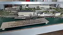 In 1909 construction began on the huge concrete main cell block, designed by Major Reuben Turner, which remains the island's dominant feature. It was completed in 1912.[18] To accommodate the new cell block, the Citadel, a three-story barracks, was demolished down to the first floor, which was below ground level. The building had been constructed in an excavated pit, creating a defensive dry moat. The first floor was incorporated as a basement to the new cell block, giving rise to the popular legend of "dungeons" below the main cell block. The US Disciplinary Barracks was deactivated in October 1933 and transferred to the Bureau of Prisons.[18]