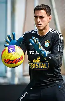 Duarte is a product of the youth academies of Academia Frama, Esther Grande, Bayer Leverkusen, and Juan Aurich.[2] He began his senior career with Juan Aurich in 2013, before moving to Cienciano in 2015.[3] The following season, he had a stint with Deportivo Municipal. He moved to Mexico in 2017 with USMP, and his success there led to a move to BUAP where he acted as backup goalkeeper.[4] In 2019, he returned to Peru with Zacatepec, before moving to Paraguay the following season with Sportivo Luqueño.[5] He once more returned to Peru in 2021, signing with Sporting Cristal.[6]