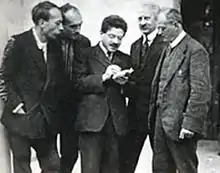 Left to right: I. V. Obreimov, N. N. Semyonov, P. Ehrenfest, A. F. Joffe, A. A. Chernyshyov, in 1924