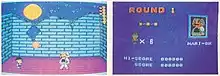 - Round 1 - Set in a city. The boss is "Kabuto" (a parody of Ken-oh and originally Mario), a warrior in samurai armor who throws fireballs and shrinks into a smaller size after sustaining damage.