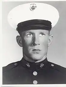 He underwent recruit training with the 3rd Recruit Training Battalion, Recruit Training Regiment, Marine Corps Recruit Depot, San Diego, California. Upon completion of recruit training, in April 1968, he was transferred to Camp Pendleton, California, and completed individual combat training with Company D, 1st Battalion, 2nd Infantry Training Regiment, in May, and basic infantry training in June. He was promoted to private first class on July 1, 1968.[1]