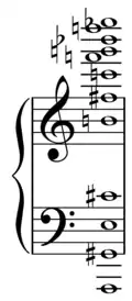 The Grandmother chord is an eleven-interval, twelve-note, invertible chord with all of the properties of the Mother chord. Additionally, the intervals are so arranged that they alternate odd and even intervals (counted by semitones) and that the odd intervals successively decrease by one whole-tone while the even intervals successively increase by one whole-tone.[13] It was invented by Nicolas Slonimsky on February 13, 1938.[14]