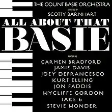 All About That Basie is an album by the Count Basie Orchestra, released on September 7, 2018.[1][2][3] On the album, the Count Basie Orchestra, now under the leadership of trumpeter Scotty Barnhart, remakes classic swing and blues classics with guest appearances by modern artists including Take 6, Stevie Wonder, and several notable jazz musicians.[2]