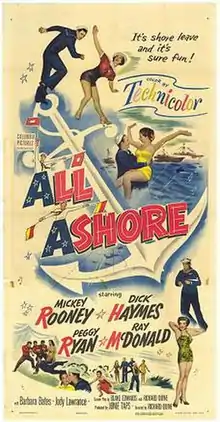 All Ashore is a 1953 American comedy musical film directed by Richard Quine and starring Mickey Rooney, Dick Haymes, Peggy Ryan and Ray McDonald.