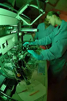 An allergy testing machine being operated in a diagnostic immunology lab