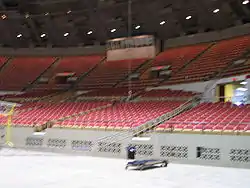 The Coliseum has a long-standing history as a hockey venue. The building was home to the Wisconsin Badgers men's hockey team from the 1967–68 season to the 1997–98 season, when they moved to the Kohl Center on campus. It was one of the largest college hockey arenas in the nation, as well as one of the loudest. Reportedly, the "sieve chant," which is now commonly heard in nearly every arena to taunt the opposing goalie after a goal, was first started at the Coliseum. The environment for Badger hockey games was such that it was nicknamed "the Montreal Forum of college hockey."[6] Badger fans still call the arena "the Great Dane."