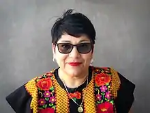Alma López (born 1966) is a Mexican-born Queer Chicana artist.[3][4][5] Her art often portrays historical and cultural Mexican figures, such as the Virgin of Guadalupe and La Llorona, filtered through a radical Chicana feminist lesbian lens. Her art work is meant to empower women and indigenous Mexicans by the reappropriation of symbols of Mexica history when women played a more prominent role. The medium of digital art allows her to mix different elements from Catholicism and juxtapose it to indigenous art, women, and issues such as rape, gender violence, sexual marginalization and racism. This juxtaposition allows her to explore the representation of women and indigenous Mexicans and their histories that have been lost or fragmented since colonization.[6][7] Her work is often seen as controversial.[6][8] Currently, she is a lecturer at the University of California Los Angeles in the Department of Chicana/o Studies.[9]