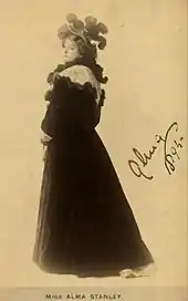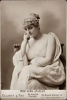 Alma Stuart Stanley (26 October 1854 – 8 March 1931) was a British actress and vocalist once popular on both sides of the Atlantic Ocean. She was perhaps best remembered as Lady Teazle in Sheridan's The School for Scandal and Aphrodite in George Procter Hawtrey's Atlanta. In a career of more than thirty years she appeared in some sixty plays and made two North American tours. Her later years were spent in reduced circumstances, culminating with her death at a London prison hospital following an arrest for public intoxication.