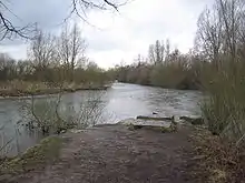 In July 1965 a devastating flood occurred, which became part of regional history as a once-in-a-hundred-years flooding and is remembered by locals as the "Heinrichsflut"[2] (Henry's Day Flood). After heavy rainfalls from July 15 through to 17 (more than 135 L/m2),[3] basements were flooded. In the village of Wewelsburg a bridge collapsed, an Army sapper unit had to be brought in for disaster relief. Streets turned into river beds, railway and bus traffic had to be stopped, 16 people died.[4] As a consequence of the flood, which also took in the tributaries of the Alme and the Lippe river itself, the "Wasserverband Obere Lippe"[5] (board for basin management of the upper Lippe river) was founded, one of whose aims is to prevent or mitigate any damage that may be caused by further floods mainly by way of building detention basins.