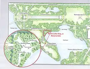 - Wheeler, Linda (December 5, 2000). "'Sacred Ground' Dedicated to King; Plaque Placed at Site of Memorial for Civil Rights Leader". The Washington Post. Archived from the original on October 25, 2012. Retrieved April 16, 2009.
