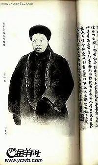 "Lu-Sen" was actually Yuan Chang (Chinese: 袁昶) (born 1846; executed 29 July 1900), a qing (minister), who according to Article II of the Boxer Protocol signed on 7 September 1901, "was the Vice-President of the Court of Sacrifices, who had been "put to death for having protested against the outrageous breaches of international law of last year".[69] Yuang Chang had tried to dissuade Dowager-Empress Cixi from supporting the Boxers and attacking the foreign legations in Beijing. Yuan Chang and fellow reformer Xu Jingcheng (Chinese: 許景澄, pinyin: Xǔ Jǐngchéng; Wade-Giles: Hsü Ching-ch'eng) (Born 1845; beheaded 29 July 1900) the Chinese Minister of Foreign Affairs,[70] had sent in three petitions to Cixi in a futile attempt to stop the attacks on the embassies, as well as to encourage the suppression of the Boxers.[71] According to Klein: