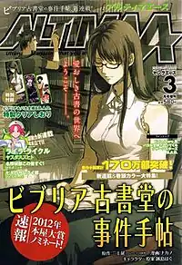 Altima Ace (アルティマエース), also known as AltimaA, and subtitled "Ultimate Magazine that you are crazy about," is a defunct Japanese manga magazine published by Kadokawa Shoten. Altima Ace was a spinoff sister magazine to Kadokawa Shoten's Young Ace. The first issue was released on October 18, 2011, and was scheduled to publish bimonthly in Japan on the 18th day of even-numbered months, priced at 580 yen.[2][3]