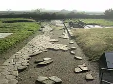Stratigraphy related to the late Bronze Age and the transition to the Iron Age was found to the south-east of the town in the late 1990s and further out to the north-east, close to the River Sile, in 2005. In 2002 tombs datable to the late 6th- early 5th century BCE were found at the eastern edge of the town and to its north, by the River Zero. They were related to a cemetery investigated in the late 1970s.[5] The pre-Roman cemetery area to the north of Altinum covered the whole of the northern strip which was later crossed by the northern tract of the Via Annia and the Roman period cemetery. It stretched to the left bank of the River Zero. This arrangement of cemetery areas at the edge of a town and separated by watercourses was typical of other pre-Roman Veneti towns, such as Este and Padua. It can be surmised that watercourses had a particular role in funerary ceremonies and represented a route from the town of the living to that of the dead and a transition to the afterlife.[4]