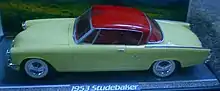 In the 1960s, commercial versions of AMT promos were marketed in retail toy and dime stores like Zayre and Murphy, commonly for $1.00. Differences from the dealer promos were: the addition of a friction motor located on the front axle, noticeable by the studded white vinyl gear that protruded around the axle (and through the oil pan); and the lack of manufacturing paint schemes (they were simply molded in different colors).[21] By contrast, the promo version often had a special lower engine plate that covered where the friction motor was placed on the commercial model. Early on, some cars, such as the 1953 Studebaker Commander promo, had the addition of acetate windows, while the friction powered model was windowless.[22]