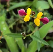 Alysicarpus is a genus of flowering plants in the legume family, Fabaceae. It is distributed in tropical and subtropical regions[2] of Africa, Asia and Australia.[1] Species are known generally as moneyworts.[3] Unusually for legumes, the leaves are simple (not compound).