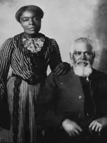 In 1870, Samuel and Amanda migrated to Utah with her brother Edward and his wife, along with Samuel's teenaged son, Peter.[8] The cost of the journey had required them to save their money for four years. To make the long trip, they used an ox-drawn wagon.[6] They arrived in Salt Lake City on April 27, 1870.[1] When they arrived, Utah was home to only 118 African Americans.[7] During this time, Black members of the Church were prohibited from being ordained to the Priesthood.[9] The Chambers quickly became involved with the activities of the Eighth ward, Samuel receiving a calling as an assistant deacon, and Amanda becoming a Relief society "deaconess".[10] They were also assigned custodial duties and the helped care for the buildings of the church.[9] They became very successful in fruit and berry cultivation.[11] In 1875, Amanda was baptized into the church, after living in Utah for 5 years.[1] Both Samuel and Amanda received their patriarchal blessings on September 5, 1874, from patriarch John Smith.[12] The Chambers were known for being very active in the Church, despite racial discrimination.[4]