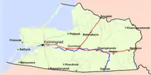 However, about 90%[3][4] to 98%[2] of all output of amber has been produced in the Sambia region (now a Russian exclave, formerly in Eastern Prussia and the Polish–Lithuanian Commonwealth).[2] The Sambian amber-producing region is a square of about 30–40 km (20–25 miles), although geologists estimate there are deposits beyond the region of the main excavations.[2] A potential nearby source of amber is the Courish Lagoon.[2] Amber excavation is overseen by the Russian Amber Company (Ruskij Jantar).[2][5]