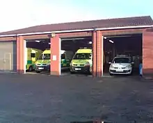Ambulance stations have facilities for maintaining ambulance vehicles, such as a charger for the vehicles' batteries.[1] They have space for storing and maintaining medical equipment, and sometimes a fuel pump. There will also be facilities for the crews, including a kitchen and showers. It varies as to whether crews routinely wait at the station itself for call-outs (as full-time firefighters do). If they do, then the station usually have an alerting system. Larger stations may have a manager's office or training rooms.