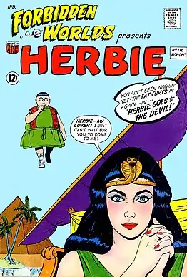 American Comics Group (ACG) was an American comic book publisher started in 1939 and existing under the ACG name from 1943 to 1967. It published the medium's first ongoing horror-comics title, Adventures into the Unknown.[2][3] ACG's best-known character was the 1960s satirical-humor hero Herbie Popnecker, who starred for a time in Forbidden Worlds. Herbie would later get his own title and be turned into a "superhero" called the Fat Fury.