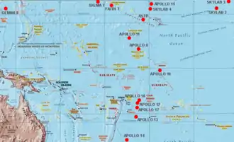 American Samoa and Pago Pago International Airport had historic significance with the Apollo Program.[27] The astronaut crews of Apollo 10, 12, 13, 14, and 17 were retrieved a few hundred miles from Pago Pago and transported by helicopter to the airport prior to being flown to Honolulu on C-141 Starlifter military aircraft.[28]