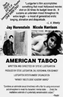 American Taboo is a 1983 American independent drama film directed by Steve Lustgarten.[3] Its plot follows a thirty-something year old photographer who begins an illicit romance with a teenage girl. It won the 1983 Academy Award for Best Student Film for Lustgarten, a film student at Portland State University.[2]