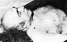 Minutes later, the former Prime Minister was taken into the prison's yard. Before reaching the area designated for firing squad executions, Hojatoleslam Hadi Ghaffari (currently a political reformist) pulled out a pistol and shot Hoveyda twice in the neck. He was left on the ground in agony, begging for the executioners to "finish him off". Seconds before the coup de grace was at last given, Hoveyda is said to have gasped to the guard standing over him: "It wasn't supposed to end like this".[12] According to the autopsy report, he apparently also was beaten shortly before his execution.