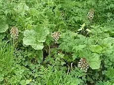 The larvae feed on the stems and roots of various grasses and low plants, including Petasites hybridus.[2]