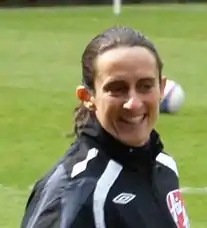 Amy Elizabeth Fearn (née Rayner; born 20 November 1977) is an English football referee from Loughborough, Leicestershire, who in 2010 became the first woman to referee in The Football League.[2] With a degree in economics and a full-time career in accountancy, having also refereed football since age 14, she became only the second woman after Wendy Toms to rise to the position of assistant referee in English professional football. On 9 February 2010 she became the first woman to act as the main referee in a Football League match.[3]