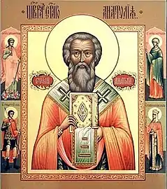 | Attributes | Vested as a bishop with omophorion, holding a Gospel Book |