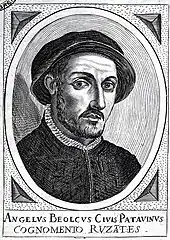 Angelo Beolco (c. 1496 – March 17, 1542), better known by the nickname Ruzzante or Ruzante, was an Italian[1] (Paduan) actor and playwright. He is famous for his rustic comedies, written mostly in the Paduan variety of the Venetan language,[2] featuring a peasant called "Ruzzante". Those plays paint a vivid picture of Paduan country life in the 16th century.