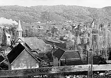 Henry Angell, a native of Rhode Island, set up a tent store on the banks of the creek. The placers around his camp were productive but gave out after a few years, and the population began to dwindle until gold-bearing quartz veins were discovered in the town, which brought people back. Those mines operated for the next few decades, producing more than $20 million worth of gold, processed by stamp mills in town. It was said that when the last mill finally ceased operations, the townspeople couldn't sleep, the silence was so loud.[1]
