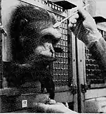 Chimpanzees tend to be used repeatedly over decades, rather than used and killed as with most laboratory animals. Some individual chimpanzees currently in U.S. laboratories have been used in experiments for over 40 years.[63] The oldest known chimpanzee in a U.S. lab is Wenka, who was born in a laboratory in Florida on May 21, 1954. She was removed from her mother on the day of birth to be used in a vision experiment that lasted 17 months, then sold as a pet to a family in North Carolina. She was returned to the Yerkes National Primate Research Center in 1957 when she became too big to handle. Since then, she has given birth six times, and has been used in research into alcohol use, oral contraceptives, aging, and cognitive studies.[64]
