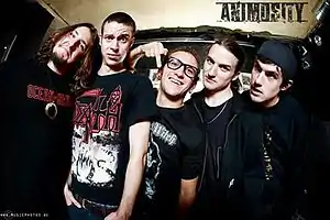 Animosity formed in 2000 in San Francisco, California.[1] They released their debut album, Shut It Down, on Tribunal Records in 2003, which was recorded when the members of the band were 16 and 17 years old.[2] In 2005, they released their second disc, Empires, on Black Market Activities[3] (with distribution through Metal Blade Records) and toured the United States with Origin and Malevolent Creation. Their third album, Animal, was produced by Kurt Ballou of Converge and released in October 2007.[4] They have also toured Europe with Converge and Belgian hardcore/punk band Rise and Fall. Animosity disbanded officially after nearly a year of non-activity in October 2009. The band's frontman Leo Miller stated that their "musical and experiential goals have been exceeded" and: "If you haven't gotten enough of Animosity, please rest assured that we have."[5]