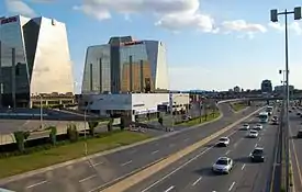 The borough is traversed by Autoroute 40 (Metropolitan Aut.) exits 80 and 82 located within its borders. Exits 6,7,8, (9 and 10 Northbound only) of Autoroute 25 (Louis-Hippolyte La Fontaine Aut.) are also located in Anjou. Among other attractions, it contains the large Les Galeries d'Anjou shopping mall which is one of the few mega malls located within the city of Montreal. The Blue line extension of the Montreal Metro which is expected to be completed in 2029 will have one new station located in Anjou with two entrances located on both sides of Autoroute 25.[6]