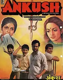Writer, Editor, Director and co-producer N.Chandra earned both popular and also critical acclaim for this film. N. Chandra scored a hat-trick at the box office with his first three films, Ankush (1986), Pratighaat (1987) and Tezaab (1988).[1] Ankush has earned the status of a cult classic over time, and the ending scene which symbolizes their hanging in front of the India Gate has received much attention. The film is one of the first realistic depictions of inner city adolescents growing up in an atmosphere of social and economic deprivation.