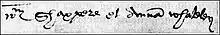 Whateley's existence has been deduced from an entry in the Episcopal register at Worcester which states in Latin "Anno Domini 1582...Novembris...27 die eiusdem mensis. Item eodem die supradicto emanavit Licentia inter Wm Shaxpere et Annam Whateley de Temple Grafton." The entry states that a marriage licence has been issued to Shakespeare and Anne Whateley to marry in the village of Temple Grafton. The day afterwards, Fulk Sandells and John Richardson, friends of the Hathaway family from Stratford-upon-Avon, signed a surety of £40 as a financial guarantee for the wedding of "William Shagspere and Anne Hathwey".[4][5]