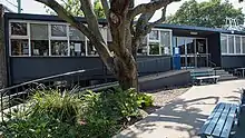 The Annerley public library was opened in 1957 at 448 Ipswich Road.[108] It was designed in 1956 by architect James Birrell and is listed on the Brisbane Heritage Register.[109]