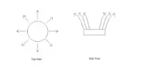 The bottom section of the riser is narrowed to avoid solids from accumulating in the bottom section. Instead of the riser walls being smooth it is generally composed of membrane waterwall surfaces, this added feature influences the solid flow patterns in the vicinity, hence influences mixing and gas-solid mixing. The riser exits are divided into two types; “once through exits” which involves the exits being smoothly curve or tapered.[3] This exit allows a large net circulation and is optimal for short uniform residence time as well as quickly decaying catalysts. The other exit is “internal reflux exits” which is an abrupt exit causing a substantial amount of entrained solids being internally separated from the gas reaching the top of the reactor.[3] The cyclone is an integral part of an annular fluidized bed, particular sized particles are separated by varying the velocity of feed gas.[1] Consequently, at high velocity gas provides enough kinetic energy to separate particles from the fluidized bed. The feed gas and small particles fly into a cyclone separator and there the feed- gas and particles are separated. In turn, particles can be returned or removed to the bed depending on the size of the particle. The entrained solids are captured and sent back to the base of the riser through a vertical standpipe.[4] The large central nozzle is the main component of the Annular Fluidized bed and this differentiate itself from other fluidized beds. The central nozzle is surrounded by a stationary fluidized bed and “due to moderate primary gas fluidisation of the annulus, the solids overflow at the upper edge of the central nozzle”[1] which is then transported and mixed in the mixing chamber by a high upward velocity central secondary gas stream.