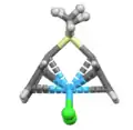 An ansa-metallocene is a type of organometallic compound containing two cyclopentadienyl ligands that are linked by a bridging group such that both cyclopentadienyl groups are bound to the same metal. The link prevents rotation of the cyclopentadienyl ligand and often modifies the structure and reactivity of the metal center. Some ansa-metallocenes are active in Ziegler-Natta catalysis, although none are used commercially.[1] The term ansa-metallocene (ansa being Greek for "handle") was coined by Lüttringhaus and Kullick to describe alkylidene-bridged ferrocenes, which were developed in the 1950s.[2]