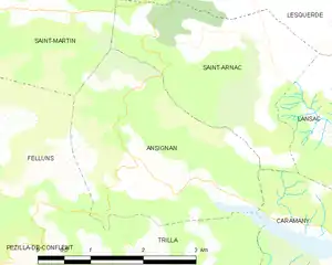 Map of Ansignan and its surrounding communes