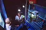 The technical equipment included an ultra-high-resolution scanning sonar[3] that was used for locating schools of juvenile herring, for guiding a ROV, which was controlled via a cyberhelmet and glove, and for determining positions, distances, and speeds. Probes measured the water salinity, temperature, and oxygen levels. Special instruments could measure plankton-, particle-, and bubble-concentrations and their size distributions.[4] Imaging equipment included low-light still and high speed video cameras using shuttered Laser-sheet or infrared LED illumination.[5] An endoscope-system for non-invasive optical measurements called ecoSCOPE, which could also be mounted on an ROV, was developed and used to record the microscale dynamics and behavior of the highly evasive herring.