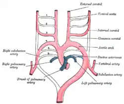 ![]() Scheme of the aortic arches and their destination. | |