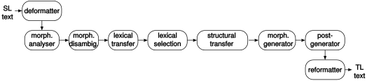 - Structural transfer (i.e., it is an XML format that allows writing complex structural transfer rules) can consist of a one-step transfer or a three-step transfer module. It flags grammatical differences between the source language and target language (e.g. gender or number agreement) by creating a sequence of chunks containing markers for this. It then reorders or modifies chunks in order to produce a grammatical translation in the target-language. This is also done using lttoolbox.