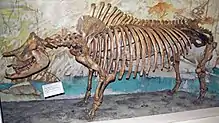 Aphelops (Greek: "smooth" (apheles), "face" (ops), in a reference of lacking a horn[1]) is an extinct genus of hornless rhinoceros endemic to North America. It lived from the Middle Miocene to the early Pliocene, during which it was a common component of North American mammalian faunas along with Teleoceras.[2]
