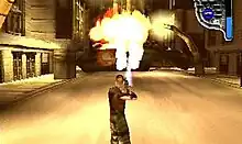The game engine for Apocalypse was completed in January 1996.[2] Initially, the player character was a mercenary accompanied by an AI-controlled partner, Trey Kincaid, in an effort to create the video game equivalent of a buddy film.[3] Activision later signed a multi-million-dollar deal for Bruce Willis to provide Trey Kincaid's voice and likeness, using "cyber-scanning" and motion capture.[4][5] Trey Kincaid's role was eventually changed to that of the main playable character, thus reducing the necessity for him to have as much spoken dialogue as was originally intended as the scope of Bruce Willis' involvement decreased as development went on. In the finished game, Willis' vocal contributions are limited mostly to the occasional one-liner and a few brief lines of dialogue in story sequences. Willis' face was photo-mapped onto Trey Kincaid's character model.[6] His motion capture performance was recorded at House of Moves, a film studio in Venice, CA.[2] The sessions were held in mid-January 1997 and took two days.[6] During voice recording, Willis made a number of suggestions of changes to the dialogue, which the developers agreed to.[6]