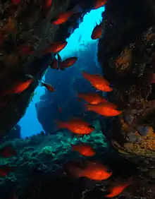 | A shoal of Mediterranean cardinalfish (Apogon imberbis) | |