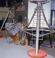 The camera was first tested in space during the Apollo 9 mission in March 1969.[21] The camera was stowed in the LM, and it used the LM's communications systems to evaluate their performance before lunar operations began.[22] This meant that the CM did not carry a video camera for this mission.[23] It was next used on Apollo 11, carried in the LM's descent stage, in the quad 4 Modularized Equipment Stowage Assembly (MESA). It was from the MESA where it captured humanity's first step on another celestial body on 21 July 1969.[21] Apollo 11 would be the first and last time the camera was used on the Lunar surface; however, it flew as a backup camera on the Apollo missions from Apollo 13 to Apollo 16, in case the color cameras suffered a similar fate as the Apollo 12 camera.[1]
