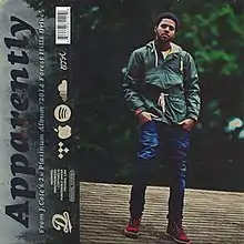 "Apparently" is a song by North Carolina rapper J. Cole, released on December 9, 2014 as the lead single from his third studio album, 2014 Forest Hills Drive. The song samples "La Morte Dell'ermina" by Filippo Trecca, and was produced by J. Cole.[1] The song has since peaked at number 58 and 17 on the Billboard Hot 100 and Hot R&B/Hip-Hop Songs charts, respectively.[2][3] The song was nominated for Best Rap Performance for the 2016 Grammys.