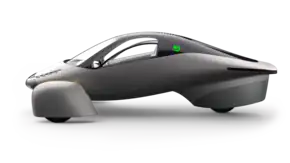 As of 2019, the first planned production Aptera is a two-seat, three-wheeled passenger battery electric vehicle (BEV). Its design includes two 50 KW wheel hub motors with an EPA-test-cycle estimated range of over 1,000 mi (1,600 km), from a 100 kWh battery pack.