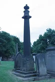 He is buried near the centre of New Calton Cemetery, close to his works on Waterloo Place. A son, William Elliot (1796–1828) lies with him.